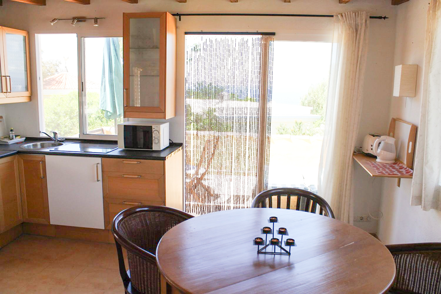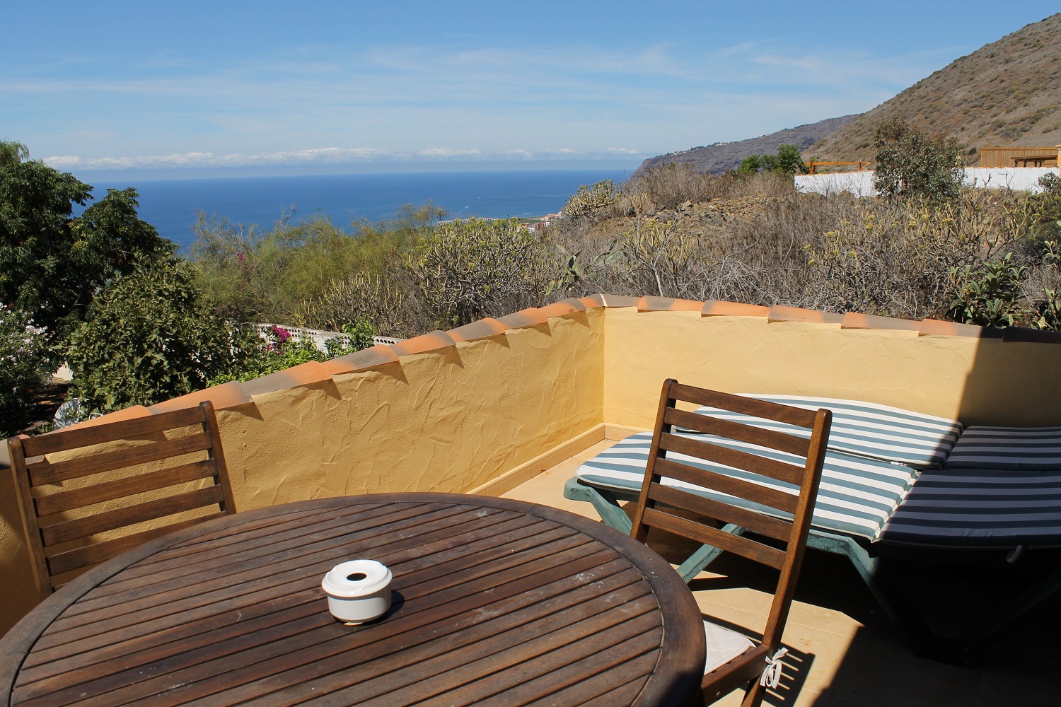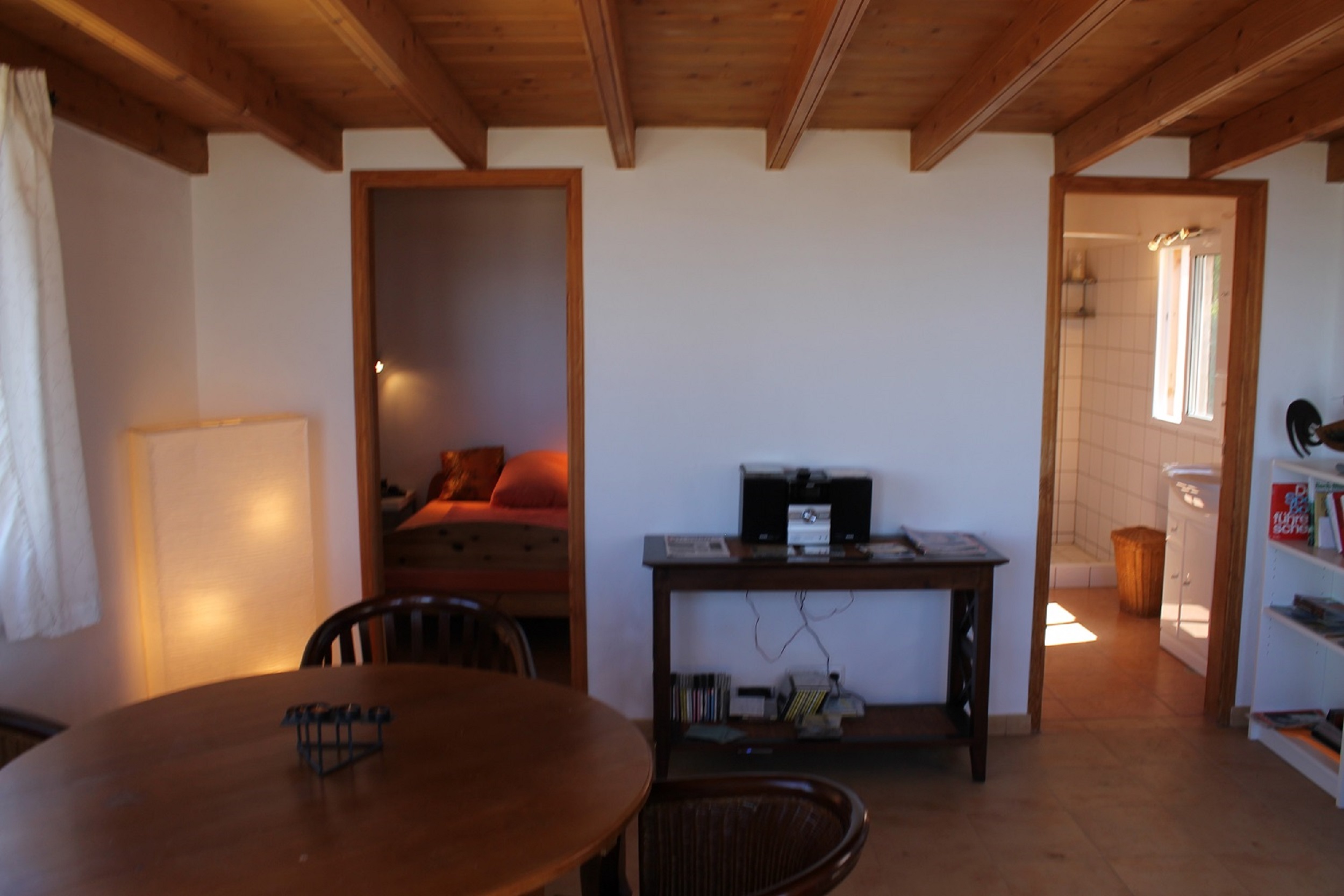 Schlafzimmer, Wohnraum inkl. Küche mit Mikrowelle, Sat-TV, Musikanlage mit CD-Player, Dusche/WC, möblierte Terrasse mit Blick auf Meer und Berge.